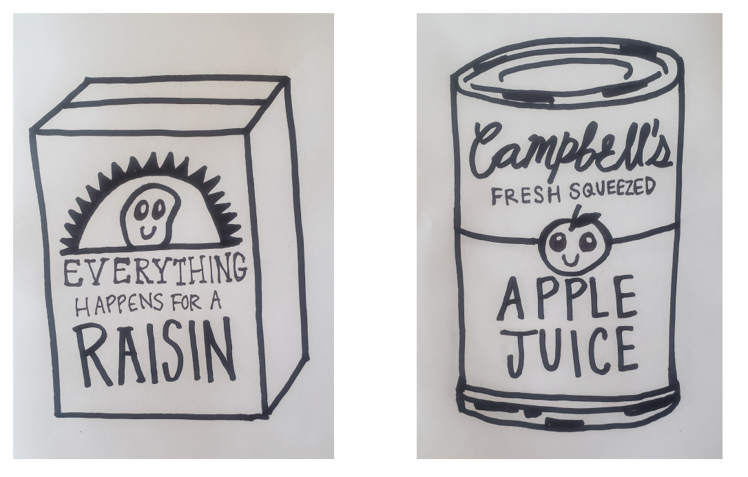 Simple line drawings paired with puns, designed in partnership with a clever mama friend and my husband